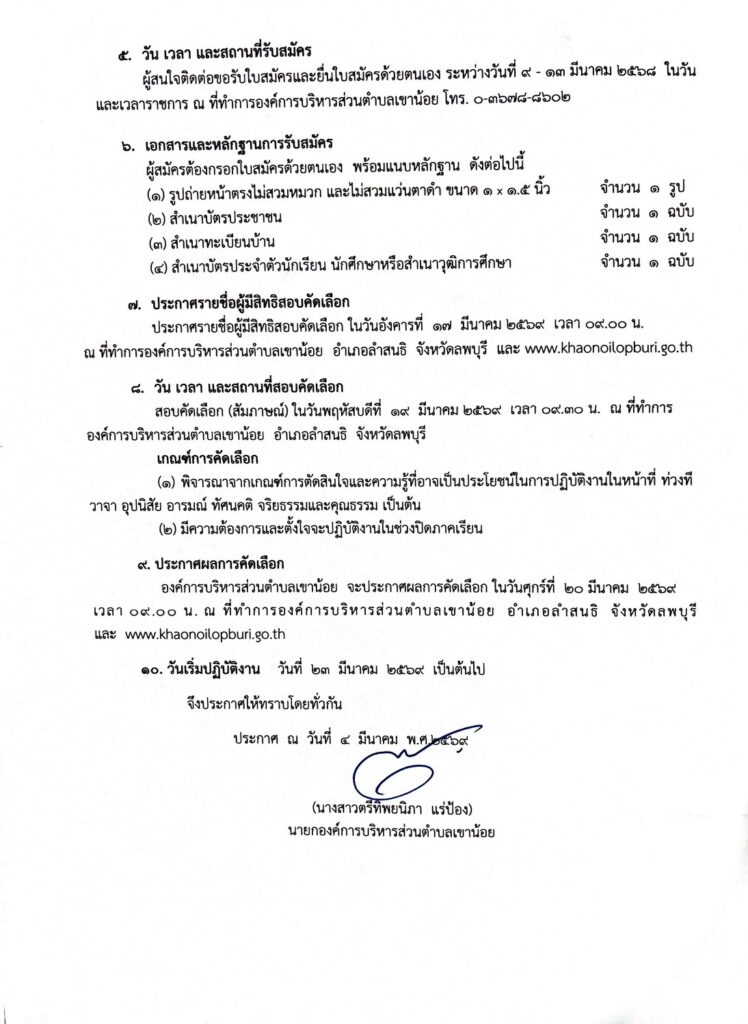 เรื่อง รับสมัครนักเรียน นักศึกษา ทำงานในระหว่างปิดภาคเรียน ประจำปีงบประมาณ 2569